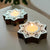 Designed to hold a tea-light candle, the holder transforms into a radiant centerpiece that emits a warm, inviting glow. Every detail is hand-carved by skilled artisans, who carefully engrave and hand-paint the motifs using a muted palette of white and brown, preserving the authenticity of traditional Indian craftsmanship.